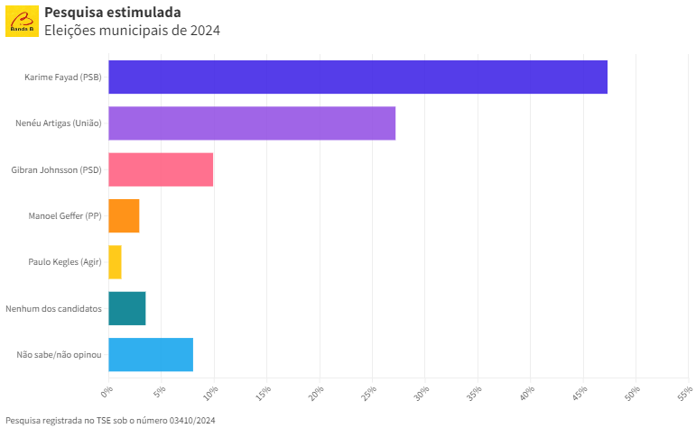 A liderança de Karime Fayad nas intenções de voto reflete seu favoritismo para conquistar a reeleição e seguir administrando Rio Branco do Sul nos próximos quatro anos.