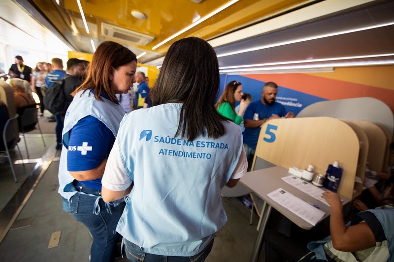A maior carreta de saúde do país conta com serviços como checkup básico de saúde, teste de glicemia, bioimpedância, acuidade visual, vacinação, barbearia e orientação em segurança sobre temas diversos.